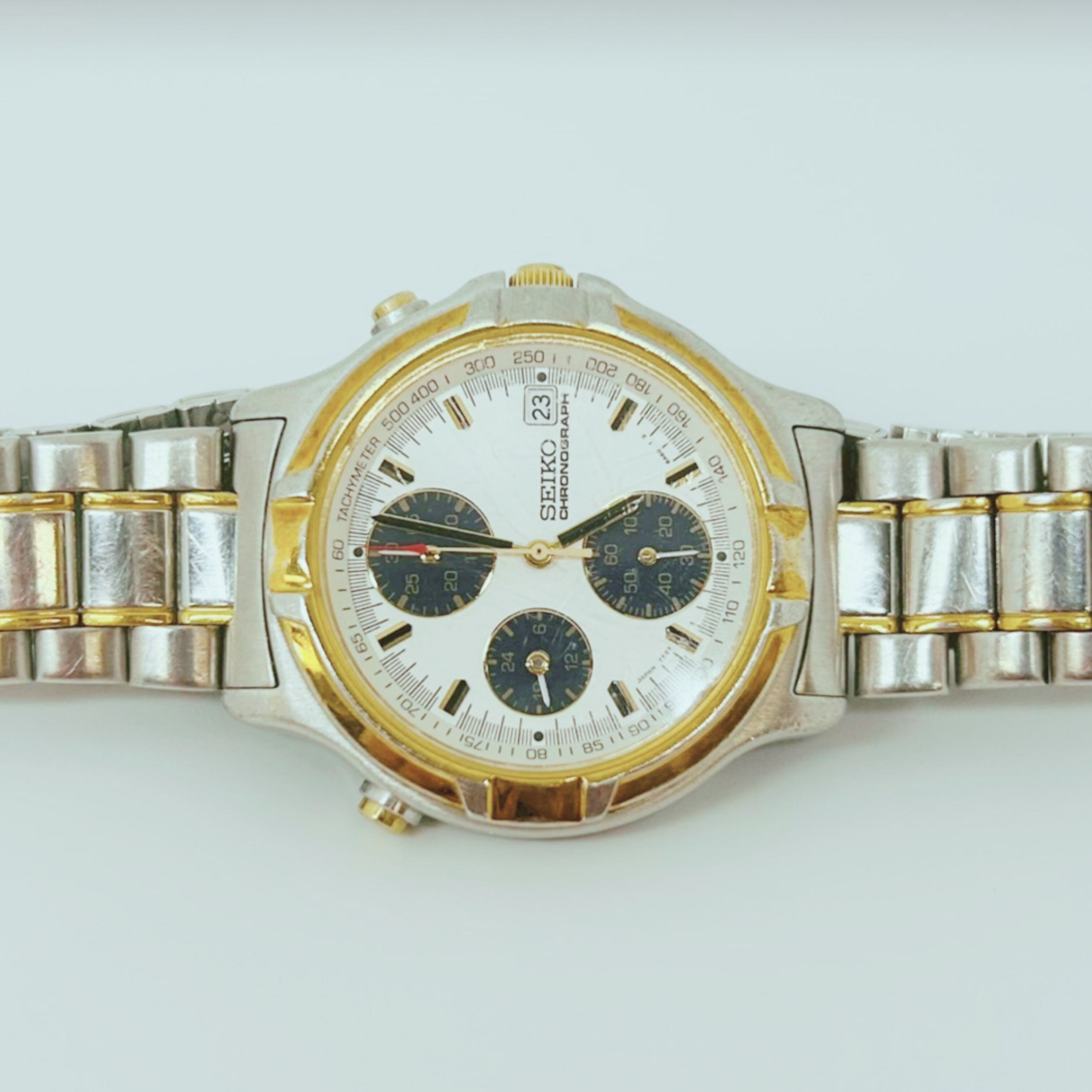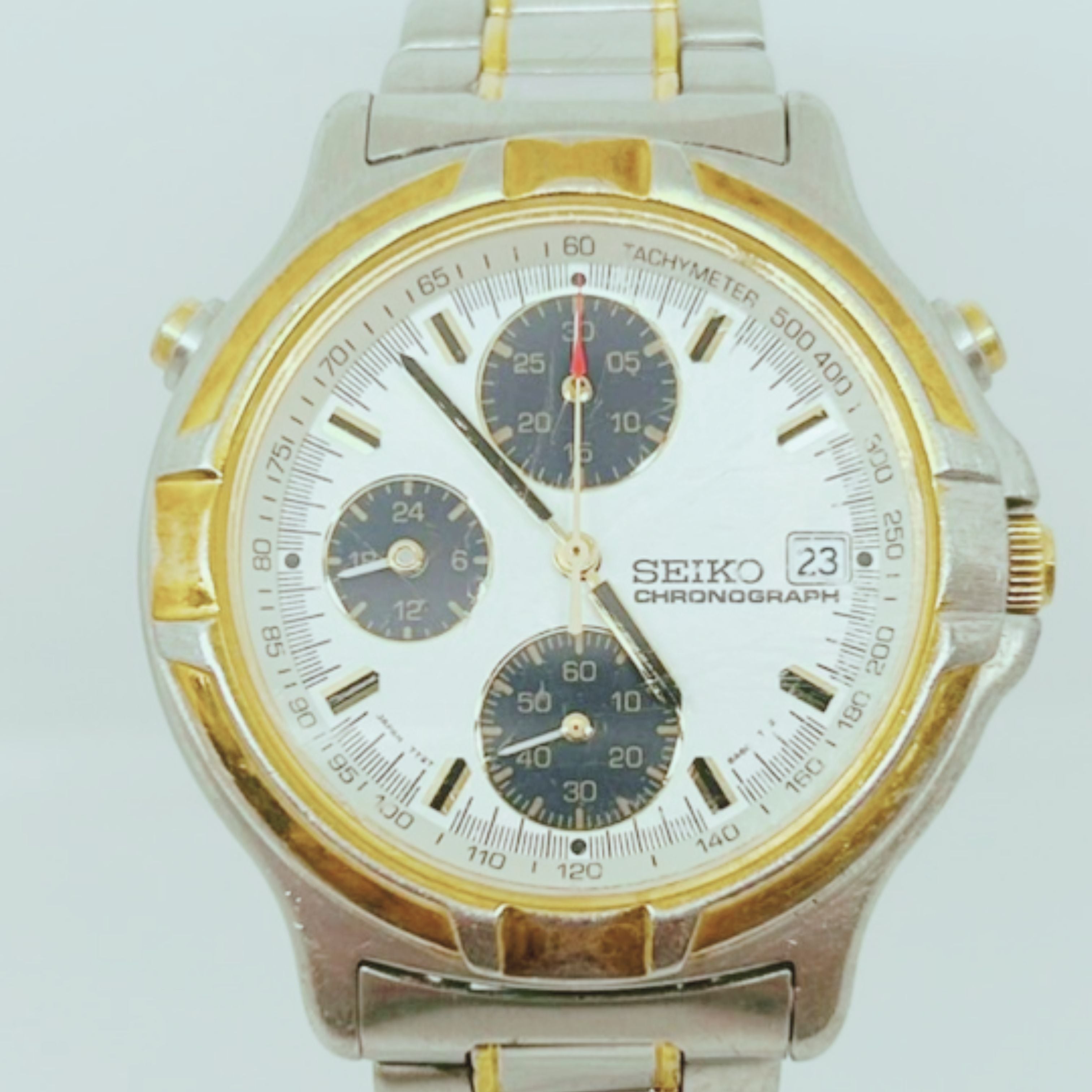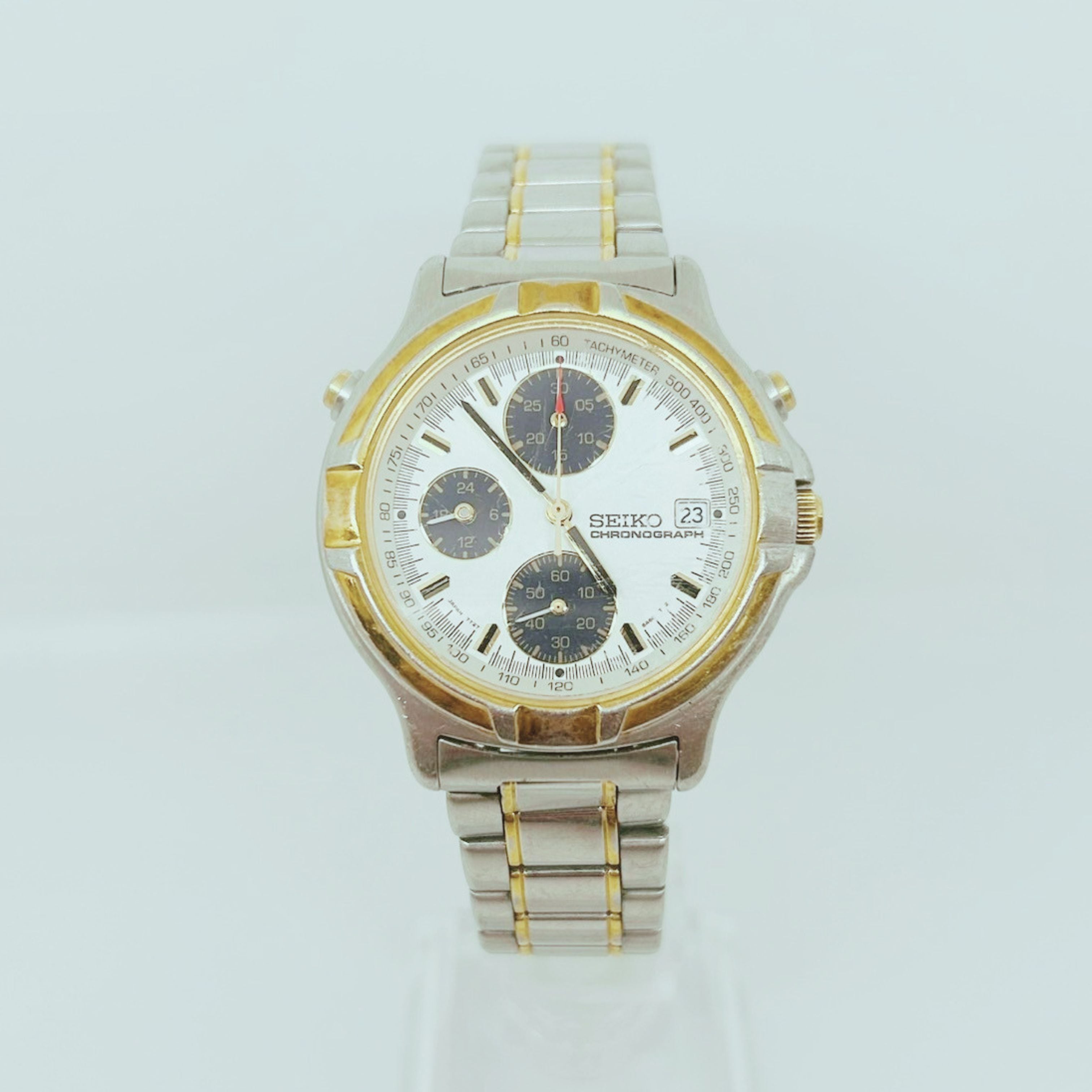 【中古】SEIKO クロノグラフ メンズ 腕時計 7T27-6A50 白 ホワイト 文字盤 SS シルバー ゴールド コンビ デイト アナログ クォーツ