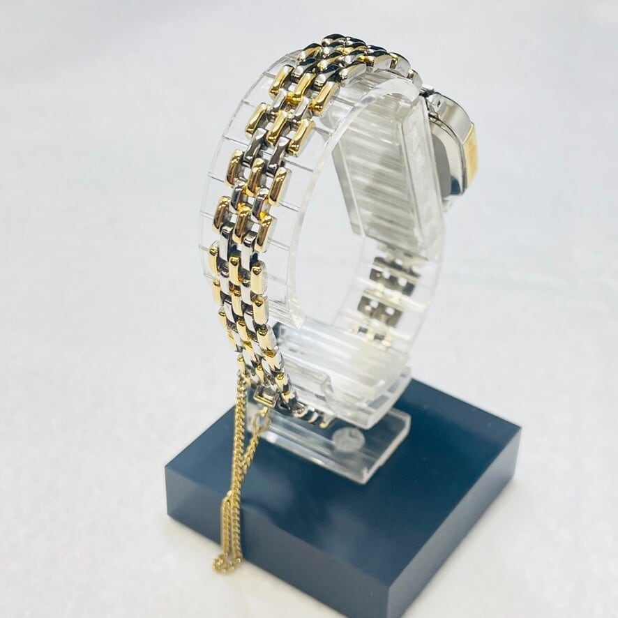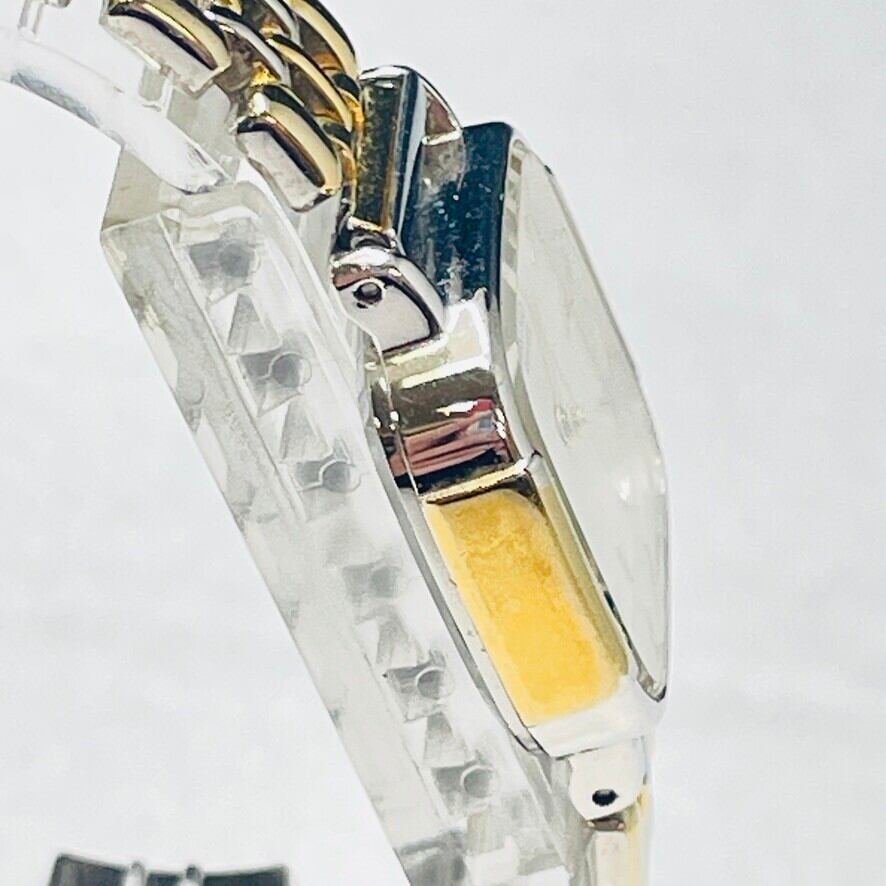 クォーツ式ムーブメントを搭載し、正確で信頼性の高い時間管理を実現しています。また、耐久性に優れたケースは、長くご愛用いただける一品です。明るいゴールドの色合いは、どんなコーディネートにもマッチし、存在感を放ちます。