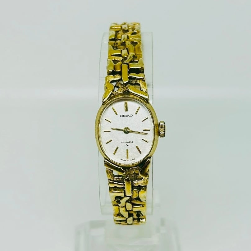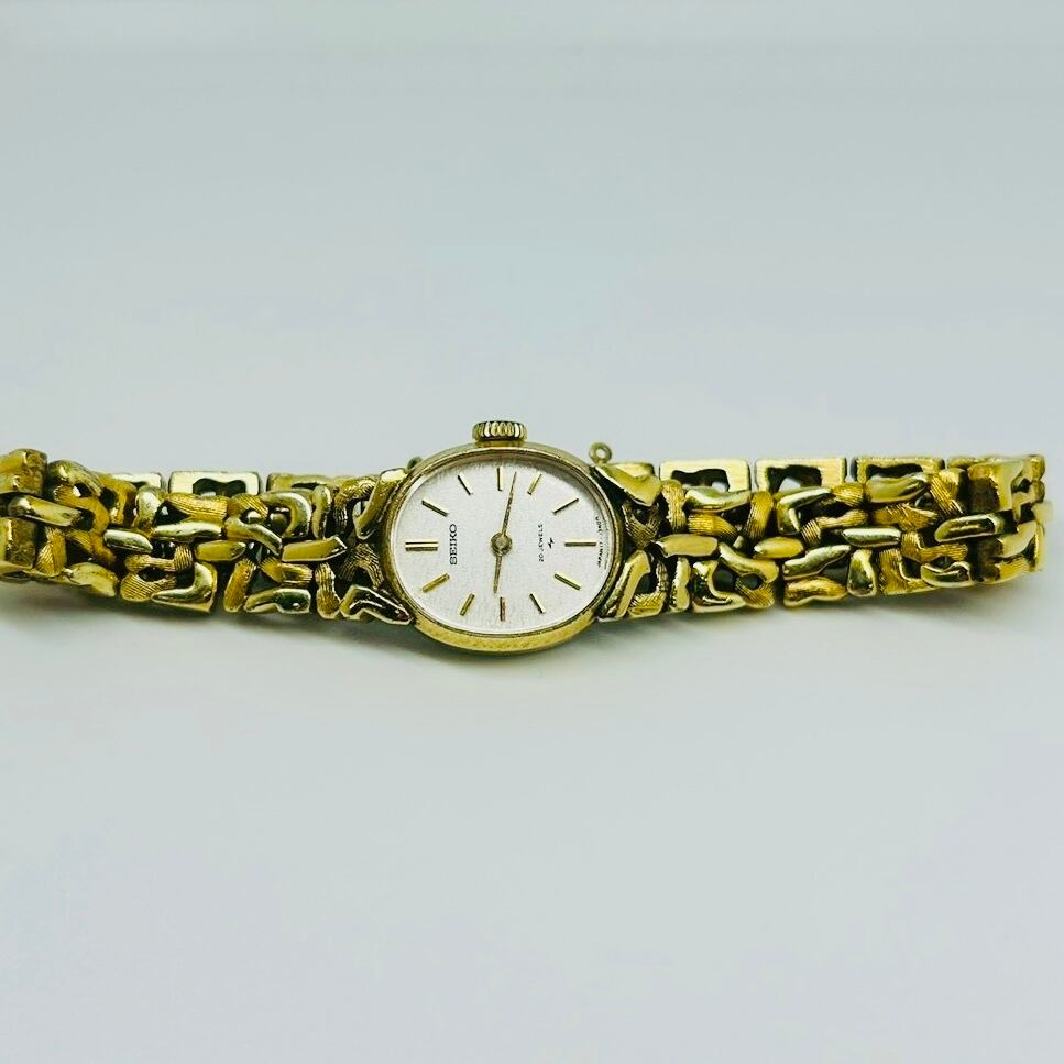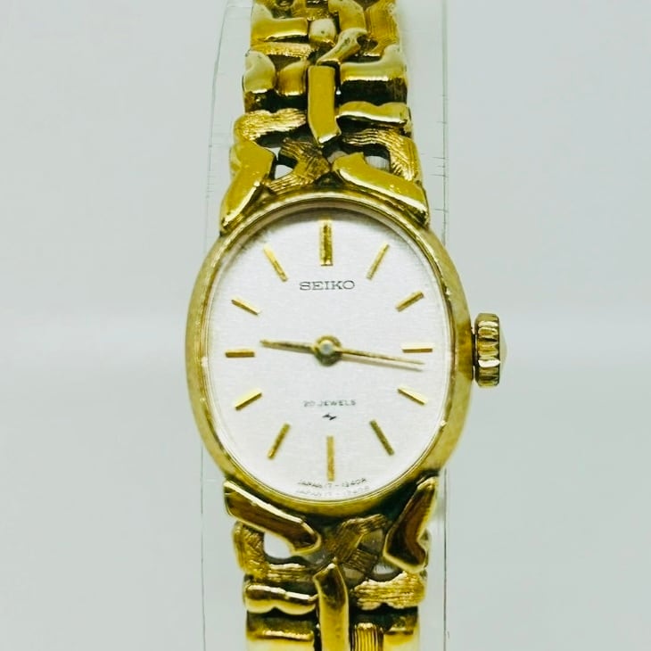 [Working] Seiko Manual Winding Watch 17-7320, White Dial, Oval Gold Lady’s Watch